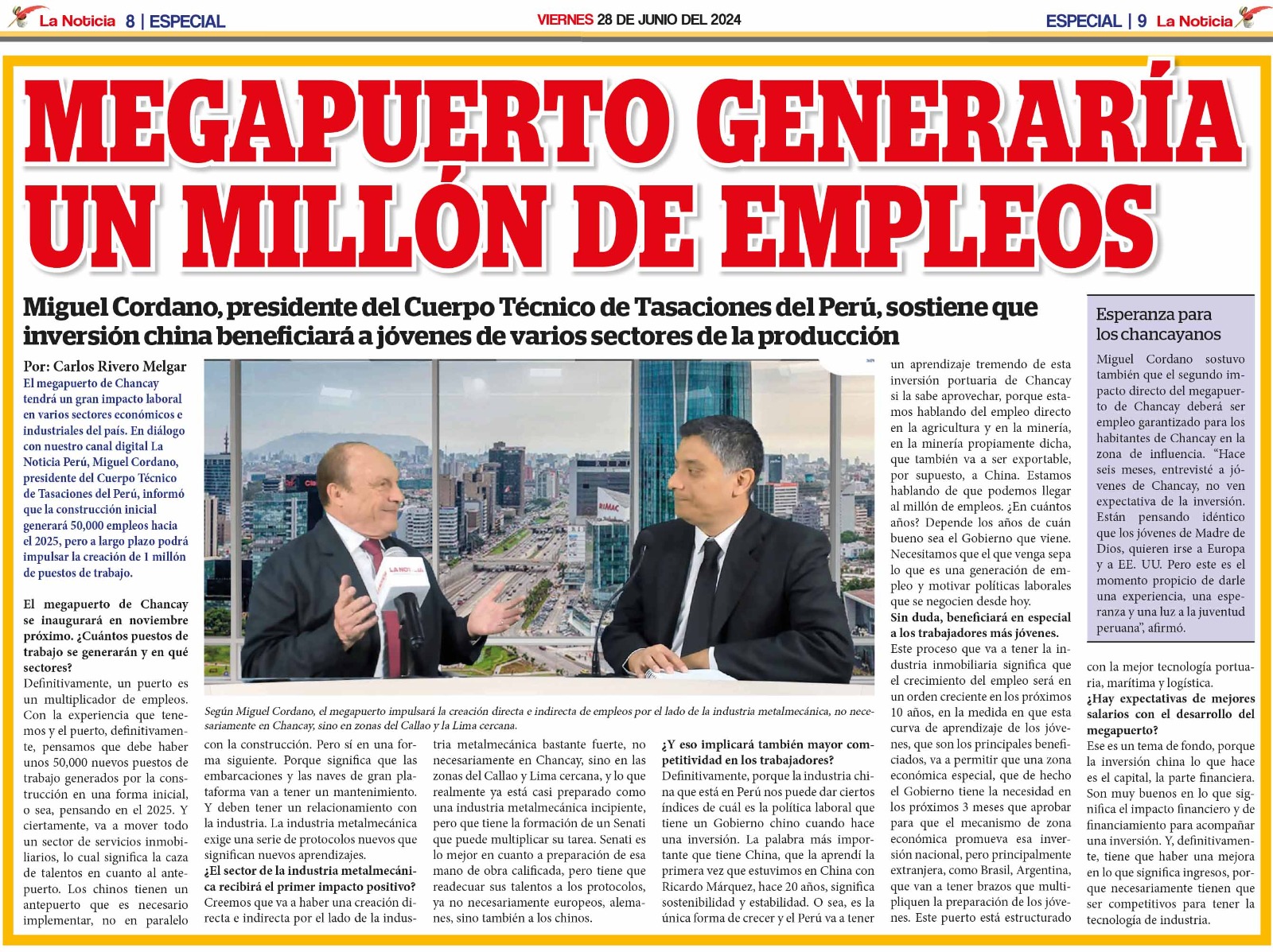 Revista Económica | Ing. Miguel Cordano, Presidente del Cuerpo Técnico de Tasaciones del Perú: El nuevo Aeropuerto nos dará mayor seguridad. 10 septiembre 2024